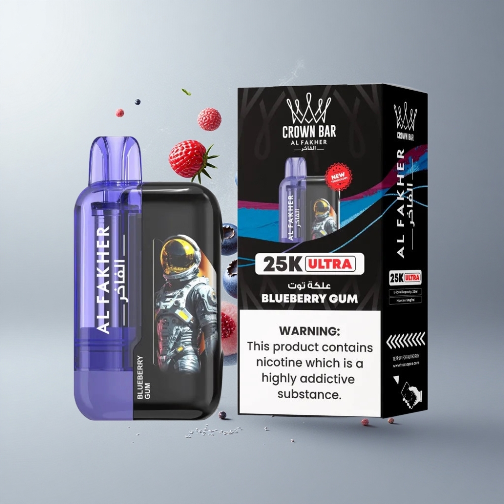 Blueberry Gum Al Fakher Crown Bar Ultra 25K Áfonya Rágó 25 000 löket és 600 mAh tölthető elem vape Hungary