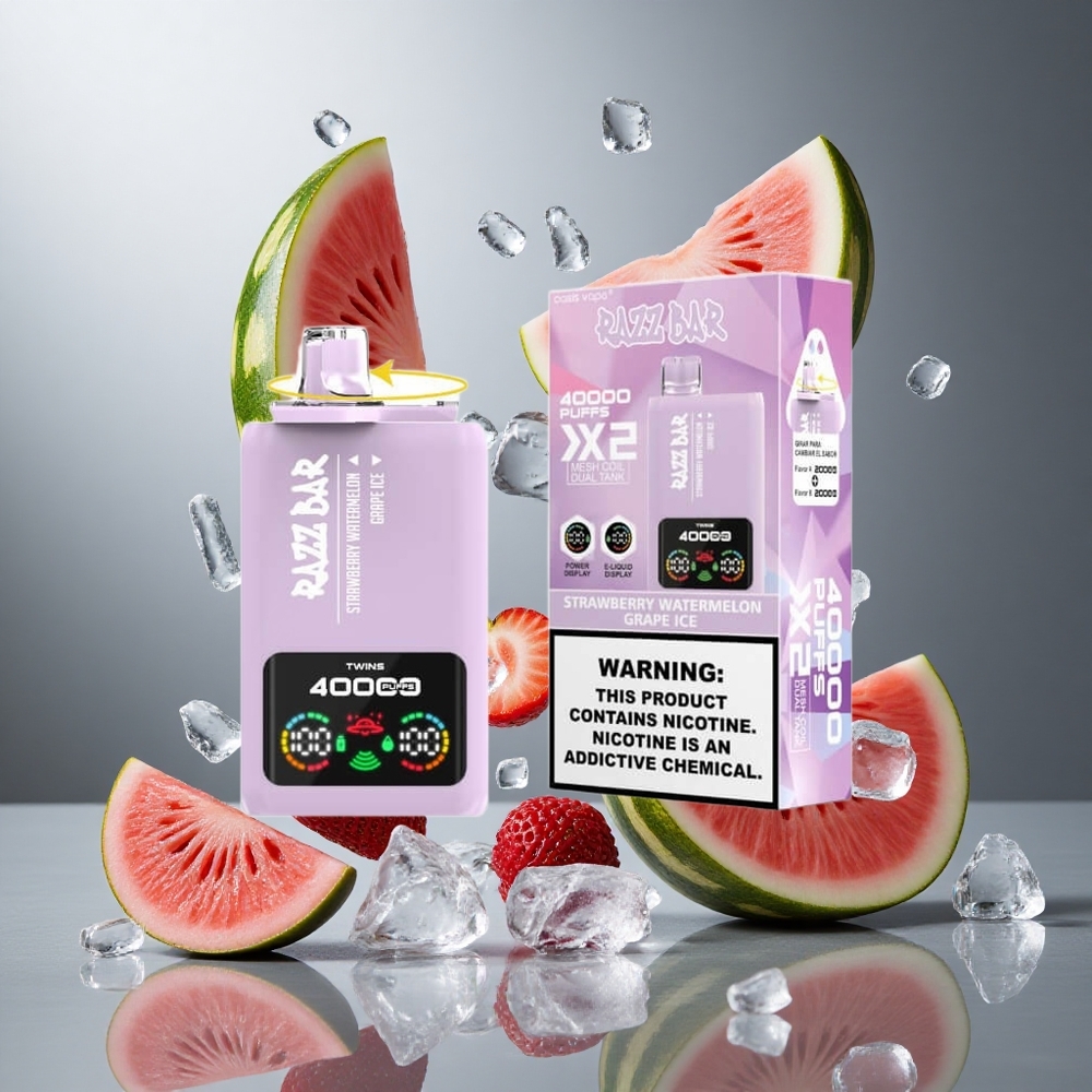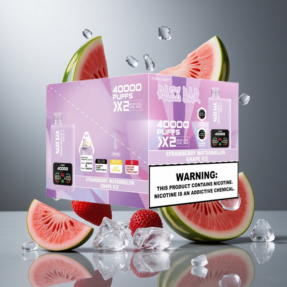 Eper Görögdinnye_Szőlő Jég Razz Bar 40000 Puffs Eldobható Vape Típusú Termék, Kijelzős Teljesítmény, 1.0 Ohm 2 Rácsos Coil