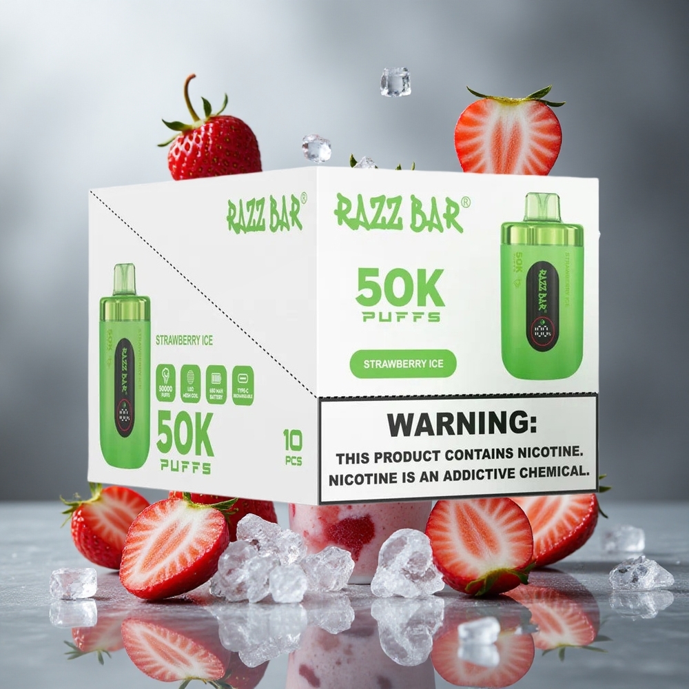 Eper Jég Razz Bar 50K Puffs Eldobható Vape Legfeljebb 50000 Szippantás Típus-C feltöltés