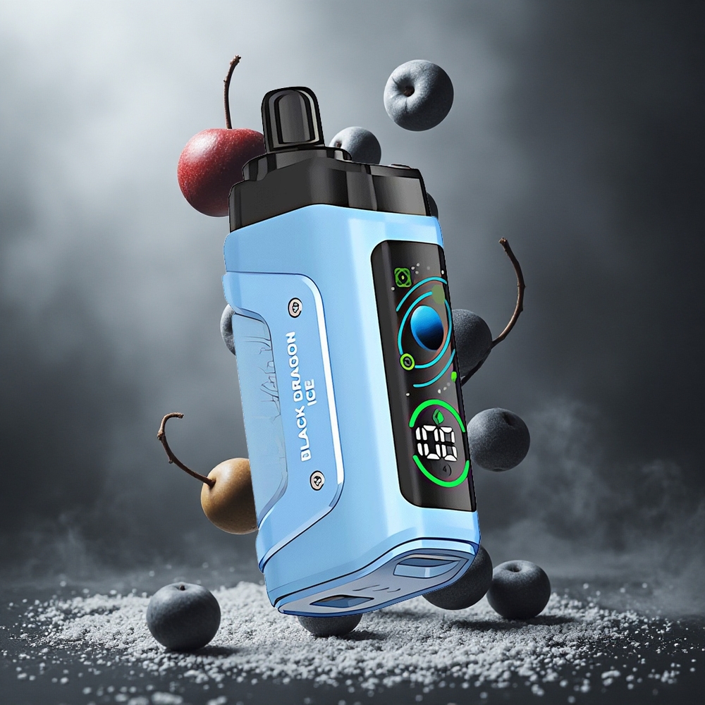 Fekete Sárkány Jég ízkombináció Razz Bar egyszerhasználatos e-cigaretta 45000 Puffs, 1.0 Ohm Mesh tekercs és állítható légáramlás