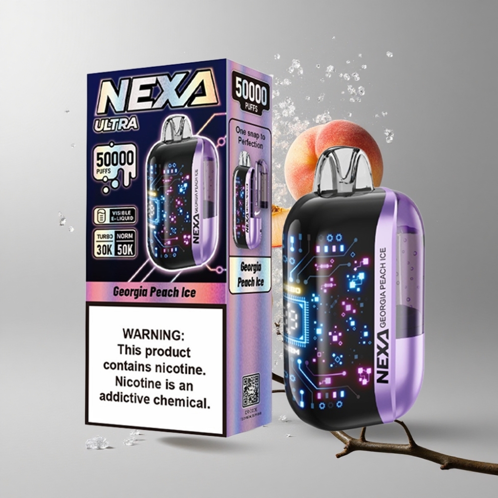 Georgia Peach Ice NEXA Ultra 50000 Puffs Georgia Peach Ice Grúzs Barack Jég Látható E-Liquid Tartály 50000 Füst: Hosszabb Vape-elés kristálytiszta