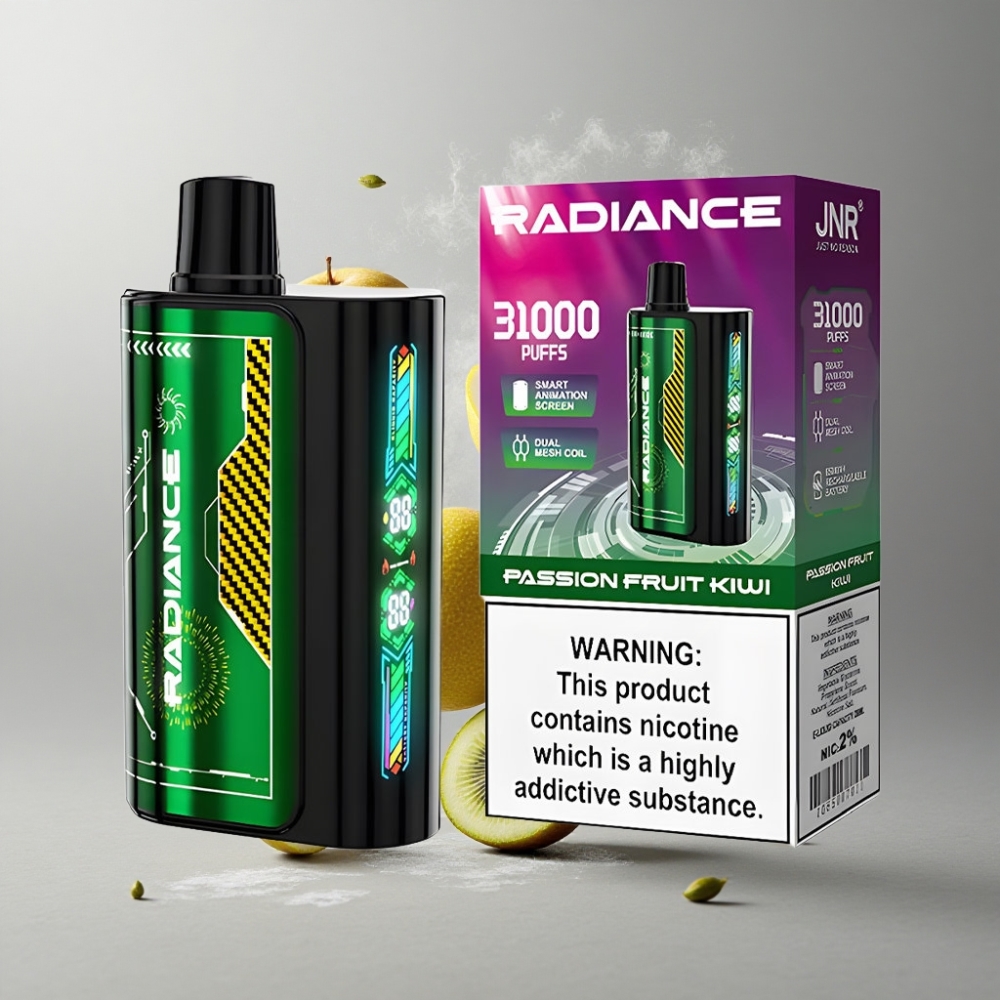 PASSION FRUIT KIWI JNR Radiance 31000 Puffs SŐRETEKGYÜMÖLCS KIWI kb. 31000 SZÍP 28 ml E-liquide vape Hungary