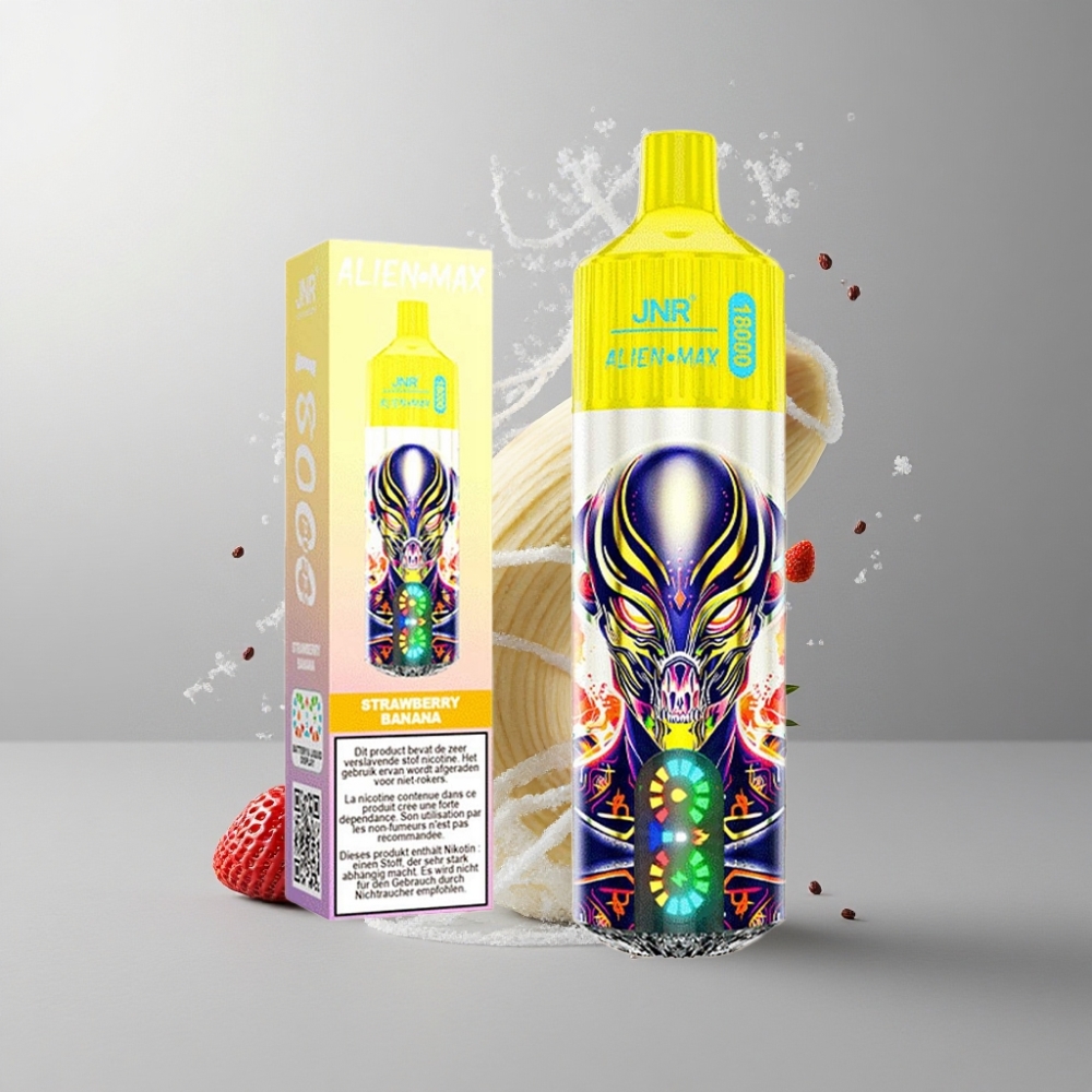 Strawberry Banana JNR Alien Max 18000 Puffs Eper Banán Okos LED kijelző Dupla Mesh tekercs és Dupla Mag vape Hungary