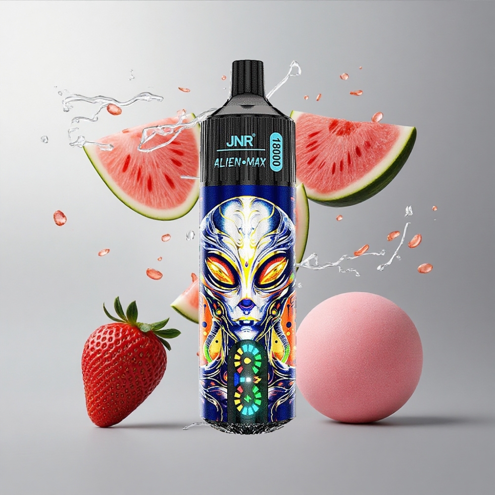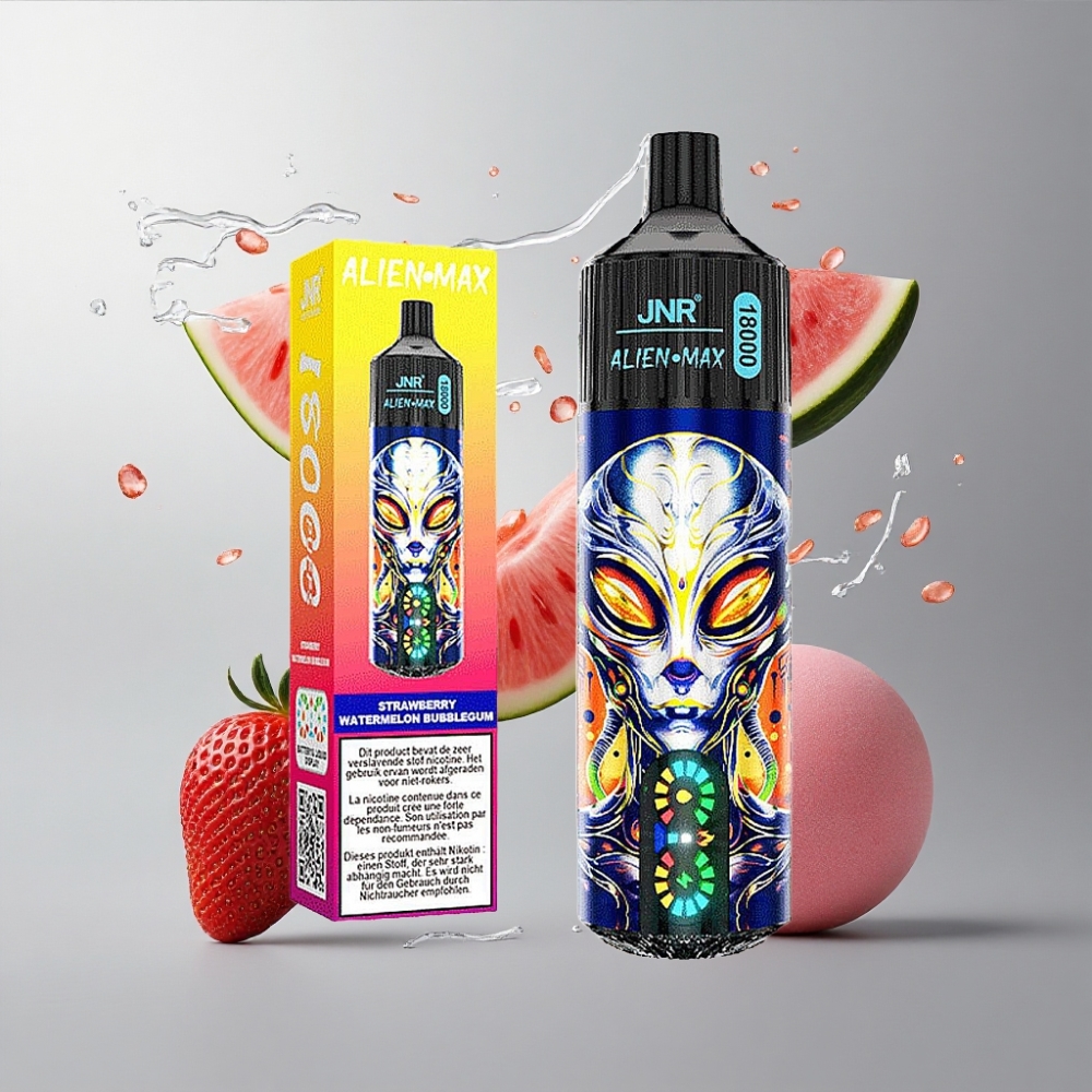Strawberry Watermelon Bubblegum JNR Alien Max 18000 Puffs Eper Dinnye Buborékrágga Okos LED Kijelző Kettős Hálós Tekercs & Kettős Mag vape Hungary