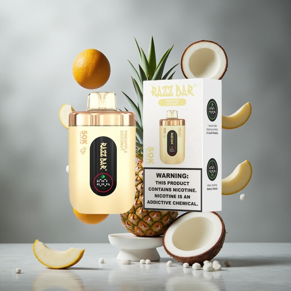 Ananász Kókusz Razz Bar 50K Puffs Eldobható E-cigaretta 50000 Puffs és 1.0 Ohm Mesh Coil