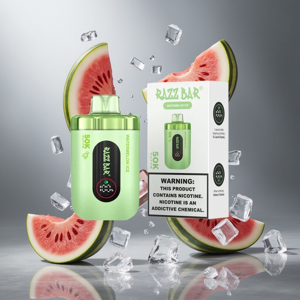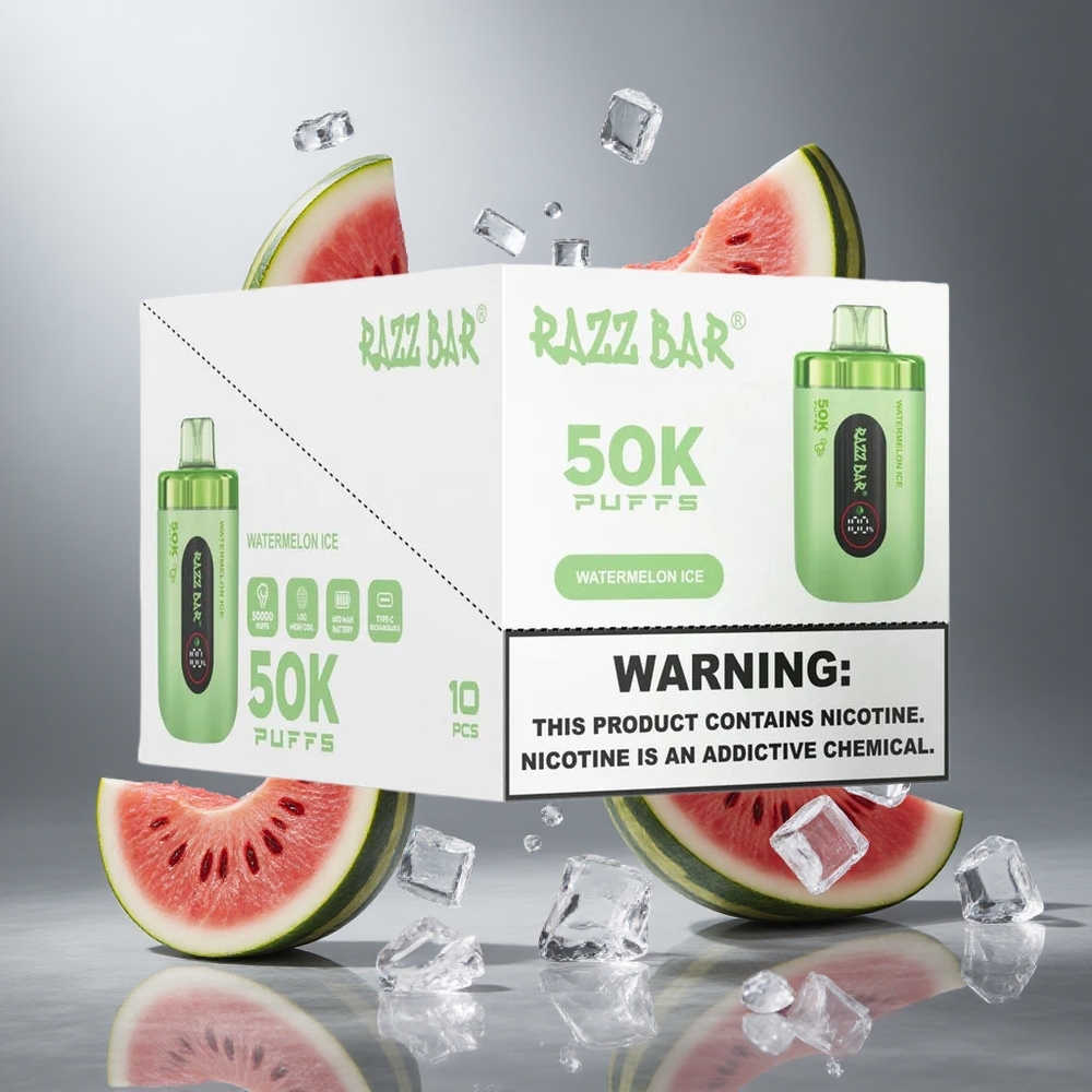 Görögdinnye Jég Razz Bar 50K Puffs Eldobható Vape 1.0 Ohm Mesh Coil és 650 Mah Akkumulátor
