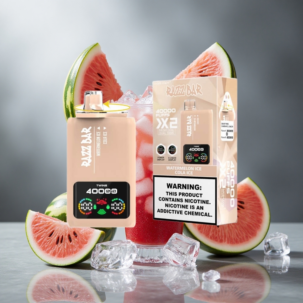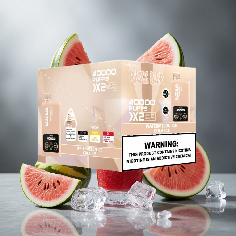 Görögdinnye Jég_Kóla Jég Razz Bar 40000 Puffs Eldobható vape Kijelző Teljesítménymérővel, 650 Mah Akku C típusú porttal
