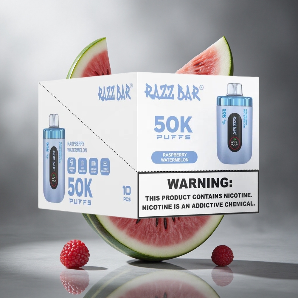 Málna Görögdinnye Razz Bar 50 000 Puffs Eldobható vape 1.0 Ohm Mesh Coil 650 Mah Battery
