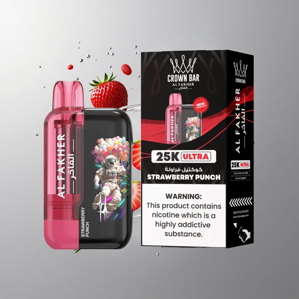Strawberry Punch Al Fakher Crown Bar Ultra 25K Eper Punch 25 000 slukk és 600 mAh tölthető akkumulátor vape Hungary