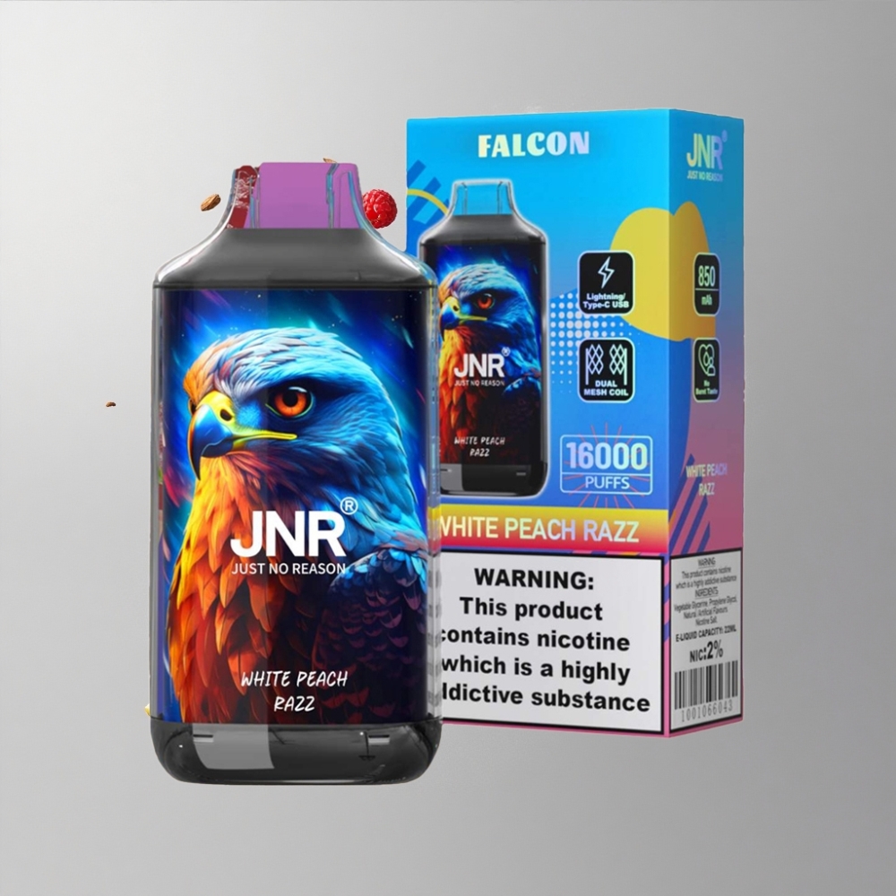 White Peach Razz JNR Falcon 16000 Puffs Fehér Barack Razz 16000 Puff 850 mAh Akkumulátor kapacitás vape Hungary